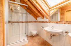 EquippmentAll 12 cabins are built out of wood. Ground floor: anteroom with ski boot dryer, snuggery with lounge next to the wood stove, sofa, satellite TV, integrated kitchen with electric cooker, oven, fridge with small freezing compartment, dishwasher, microwave, coffee machine, toaster. Beer dispenser (for those beer barrels that are available on site). 1 double room with shower. 1 toilet. Upper floor: 1 double room, 1 twin room, 1 four-bed room with double bed and extendable sofa (160x200cm), with shower/toilet. Sauna with shower/toilet. Each cottage has central heating. Wi-Fi. In front of the cottage is a terrace with seats and a barbecue. We ask you to do not smoke inside the huts!
