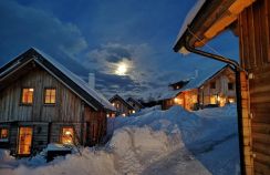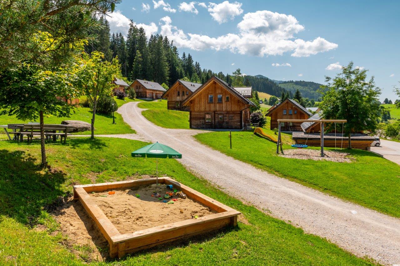 Our Hüttendorf Dachsteinblick is located on an area of 30,000m², about 4km above the village of Pruggern in the Ennstal. In winter you are right in the ski area and on the toboggan run and in summer high up in the fresh mountain air, with a wonderful view of the Dachstein and the evening sun.