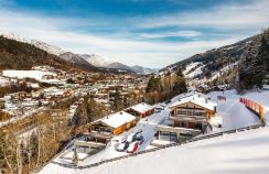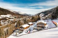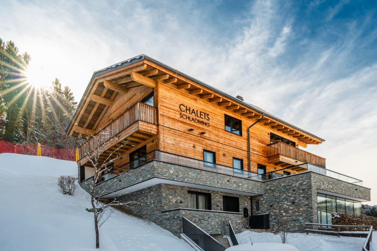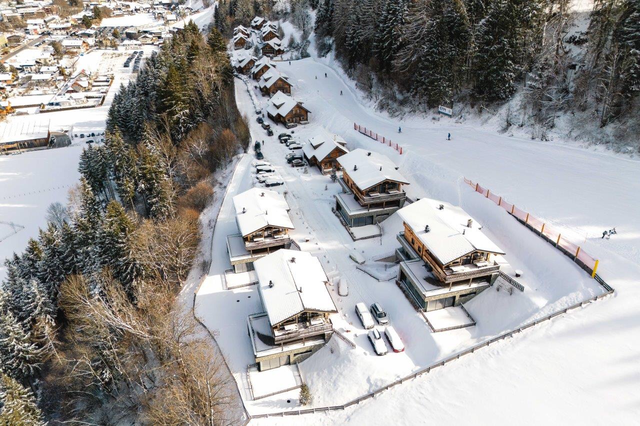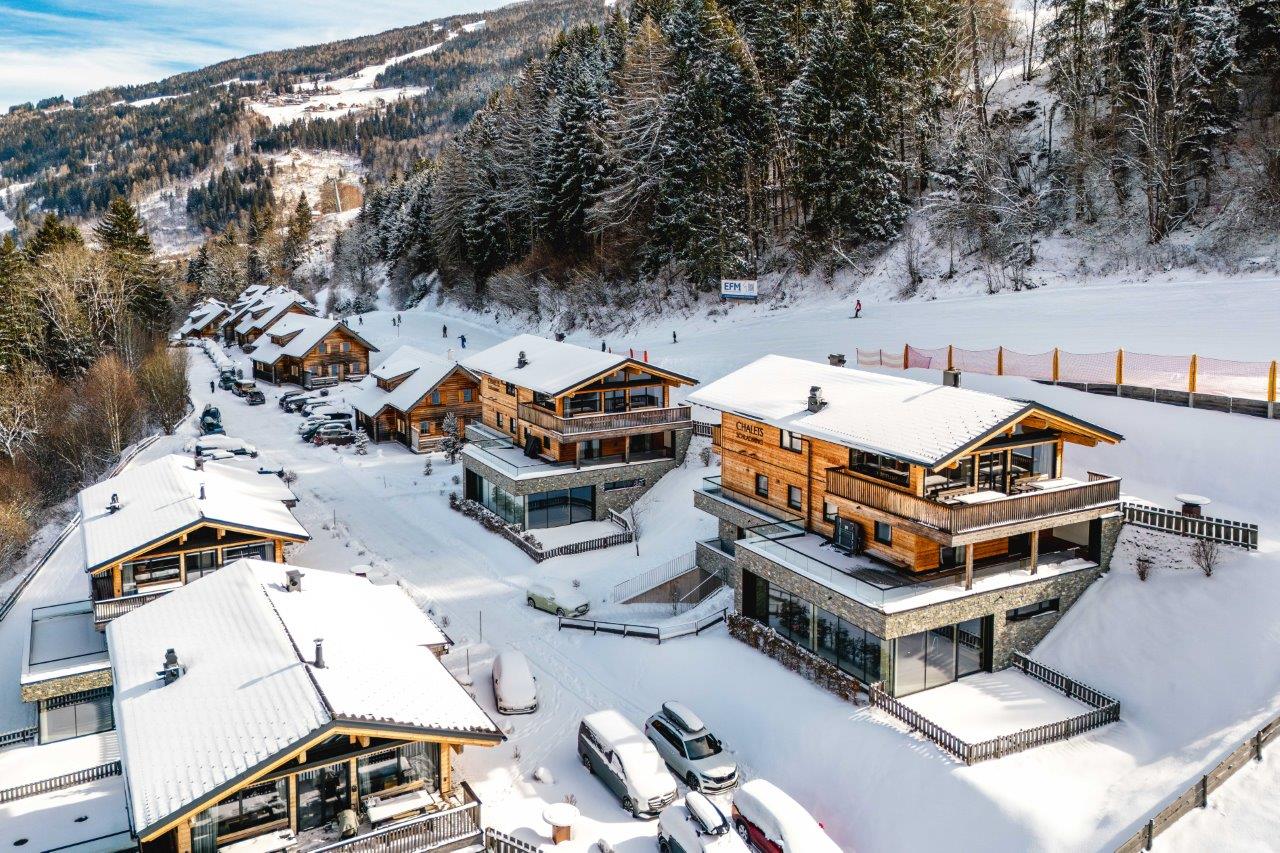 About 500m above the World Cup location Schladming, right in the center of the Schladming-Dachstein holiday region and in the middle of the "Ski amadé" with the largest range of slopes and lifts in Austria (760km of slopes and 270 lifts), we built 2021 four Luxury chalets with their own indoor pool as a connection to the existing Schladming hut village. In this category you live in one of the two rear chalets (2nd row)