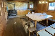 EquippmentFszt.: a kunyhó a főzőfülke a fa tűzhely, sütő, hűtőszekrény és kávéfőző. Pihenősarok, bejárata egy hangulatos nappali ülősarokkal, kandalló. Mellette egy duplaágyas szoba. Egy kicsi kétágyas szoba, zuhanyzó, WC. Feljáró az emeletre, ahol a manzárd részben 2 háromágyas szoba van. Fűtés pelletkályával vagy elektromosan. W-LAN-hálózat. A kunyhó elött terasz grillsütövel és nyugágyak.