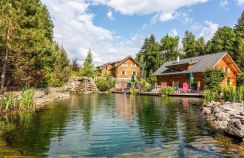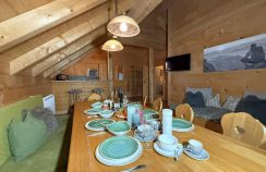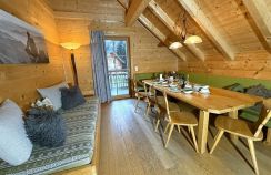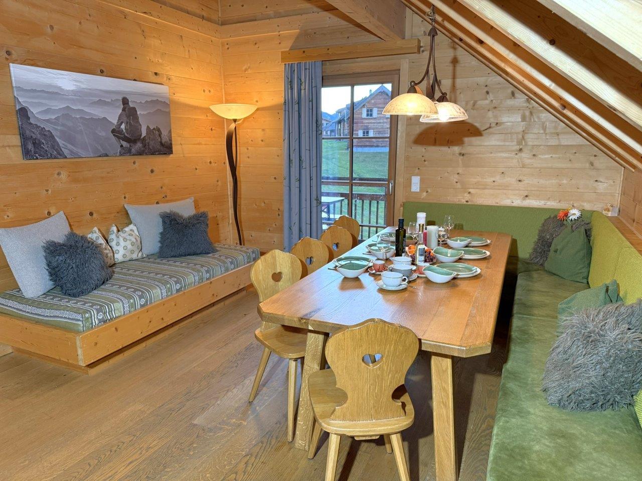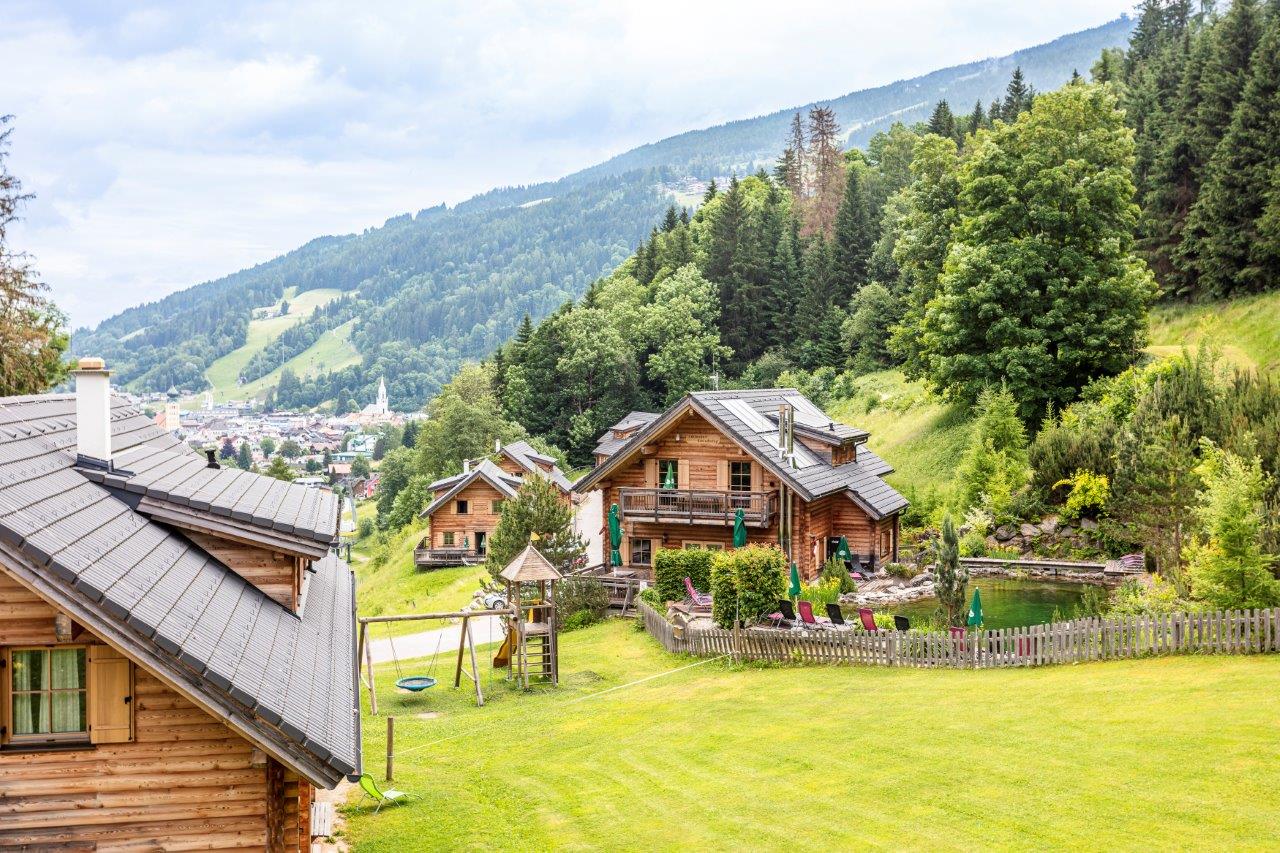 Located about 500 m above the world championship town Schladming, amidst the holiday region Schladming-Dachstein and amidst the skiing region "Ski amadé" which possesses Austria´s biggest slope- and ski lift offer (760 km slopes and 270 ski lifts). The cabin village was established on an area of 22.000 m² and consists of 10 comfortable cottages for up to 24 persons (SKI-STM) and 1 apartment (APT-STM) on the upper floor of the "reception house" for up to 12 persons. On the ground floor of the "reception house" is a shop (open at the peak sesons), providing beverages, pastries, pizzas, food, cigarettes and internet connection. Bread roll service!