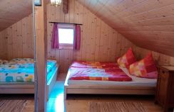 AusstattungDie Hütte hat im EG eine Stube mit Sitzecke, Küchenzeile mit Holzherd und Backofen, Abwasch (Kaltwasser), Ess- und Kochgeschirr sowie Camping-Gaskocher. Mit dem Herd heizt man die Hütte und macht das Wasser warm. Im OG ist das Schlafzimmer mit 3 Doppelbetten. 24-V Solarstrom für Licht vorhanden. Lademöglichkeit für Mobiltelefon (12Volt). Plumpsklo im Garten. Vor der Hütte großer Garten, Sitzgarnitur, Solar-Gartendusche (Warmwasser bei Sonnenschein) im Freien und Griller (bitte Grillkohle mitnehmen). Angel vorhanden.