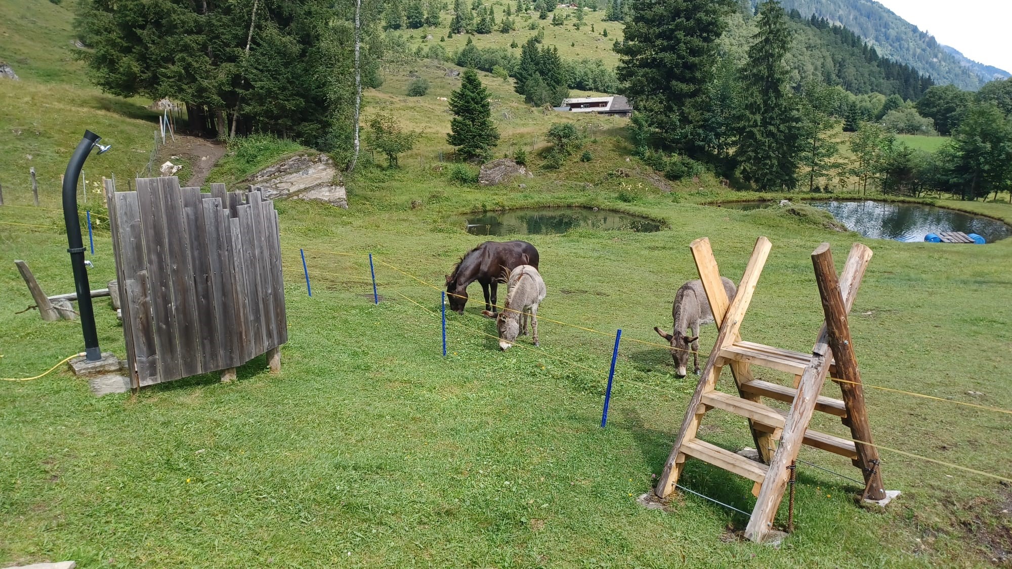 An die Solardusche kann man sich gewöhnen :-). Einziger Minuspunkt für uns:Um zum Plumpsklo zu gelangen, muss man über die Schafweide, die auch die Fischteiche mit einschließt. Die Schafe sind distanzlos und haben uns mehrmals bis aufs Klo verfolgt.Das muss man mögen.
