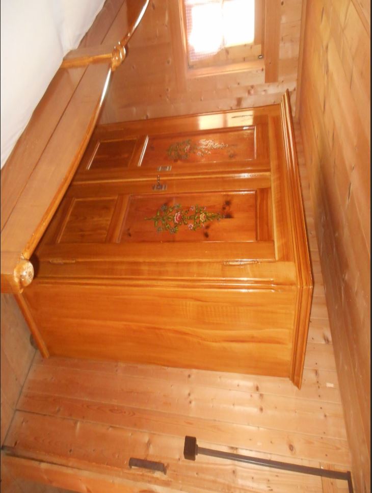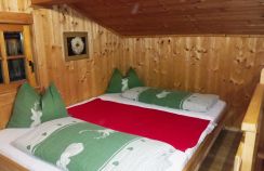 AusstattungDie Hütte ist ganz urig und rustikal ausgestattet. EG: Hüttenstube mit Sitzecke und Holzherd mit Backofen. Zimmer mit Abwasch (Kaltwasser), Toilette (mit Wasserspülung). OG: im Stiegenbereich Etagenbett und großes Doppelbett, Durchgang zu Doppelzimmer. Licht mit Solarstrom, keine Steckdosen, Solaranlage 12Volt (Handyladen möglich). Heizung mit Holzofen. Kühler Lagerkeller für Lebensmittel. Vor der Hütte Terrasse mit Sitzplatz mit herrlich weiter Aussicht über die Wiesen und Wälder, Garten mit Grillplatz und Brunntrog.