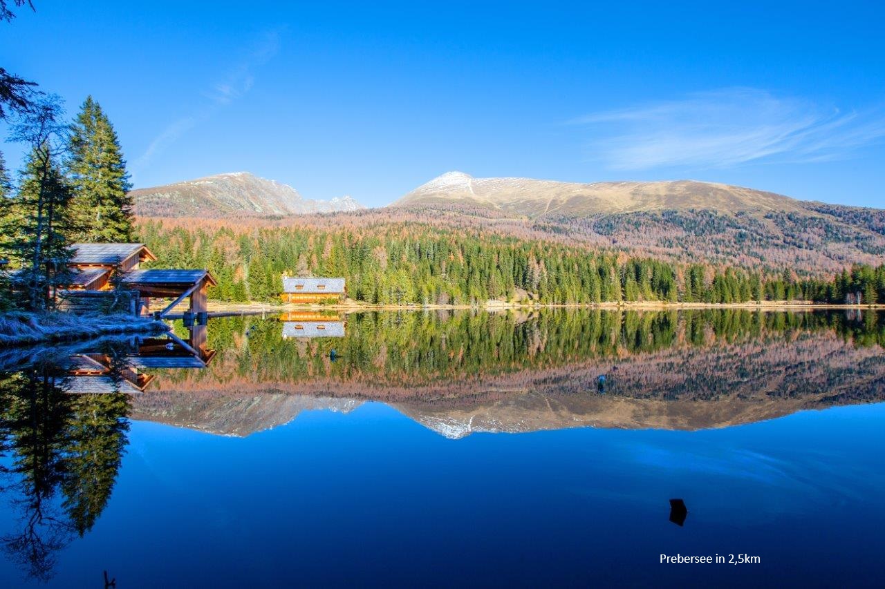 DistancesThe 5.5-acre Prebersee, which is a fishing paradise, is located in 2.5 kilometers, tip: hiking tours around the lake, mountain Preber-tour, extensive cross-country skiing, toboggan run, skitouring. There is an inn offering the local cuisien is located close to the lake and is 2km away from the chalet. Next town: Tamsweg (10km); the Speiereck or Aineck ski resort is located 20km away.